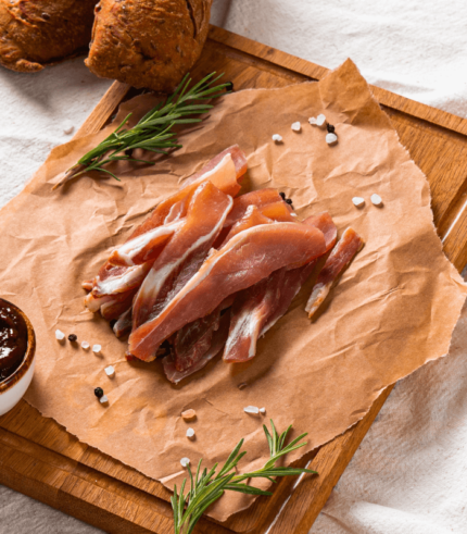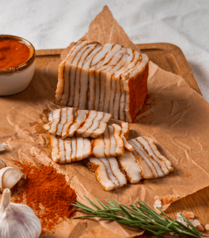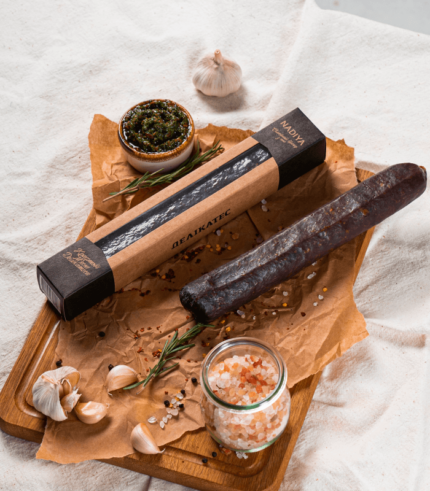 Сиров’ялена ковбаса з фермерської свинини, яка виготовляється за класичним іспанським рецептом і осушується протягом 60 днів, завдяки чому набуває ніжного аромату та збалансованої структури.