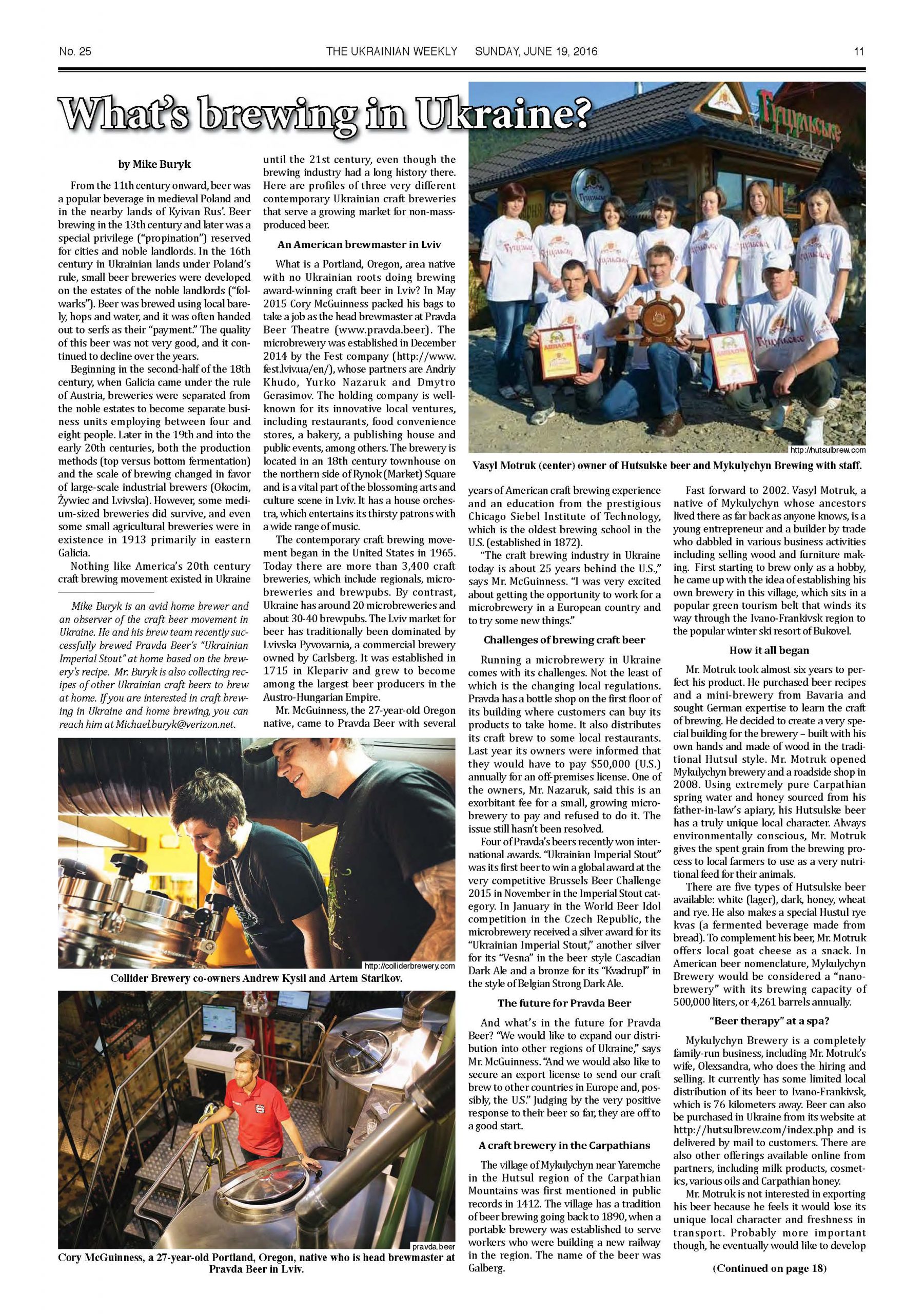 В Сполучених Штатах Америки пишуть про наших пивоварів 17 Лип Переглянути повну версію газети The_Ukrainian_Weekly_2016-25Завантажити